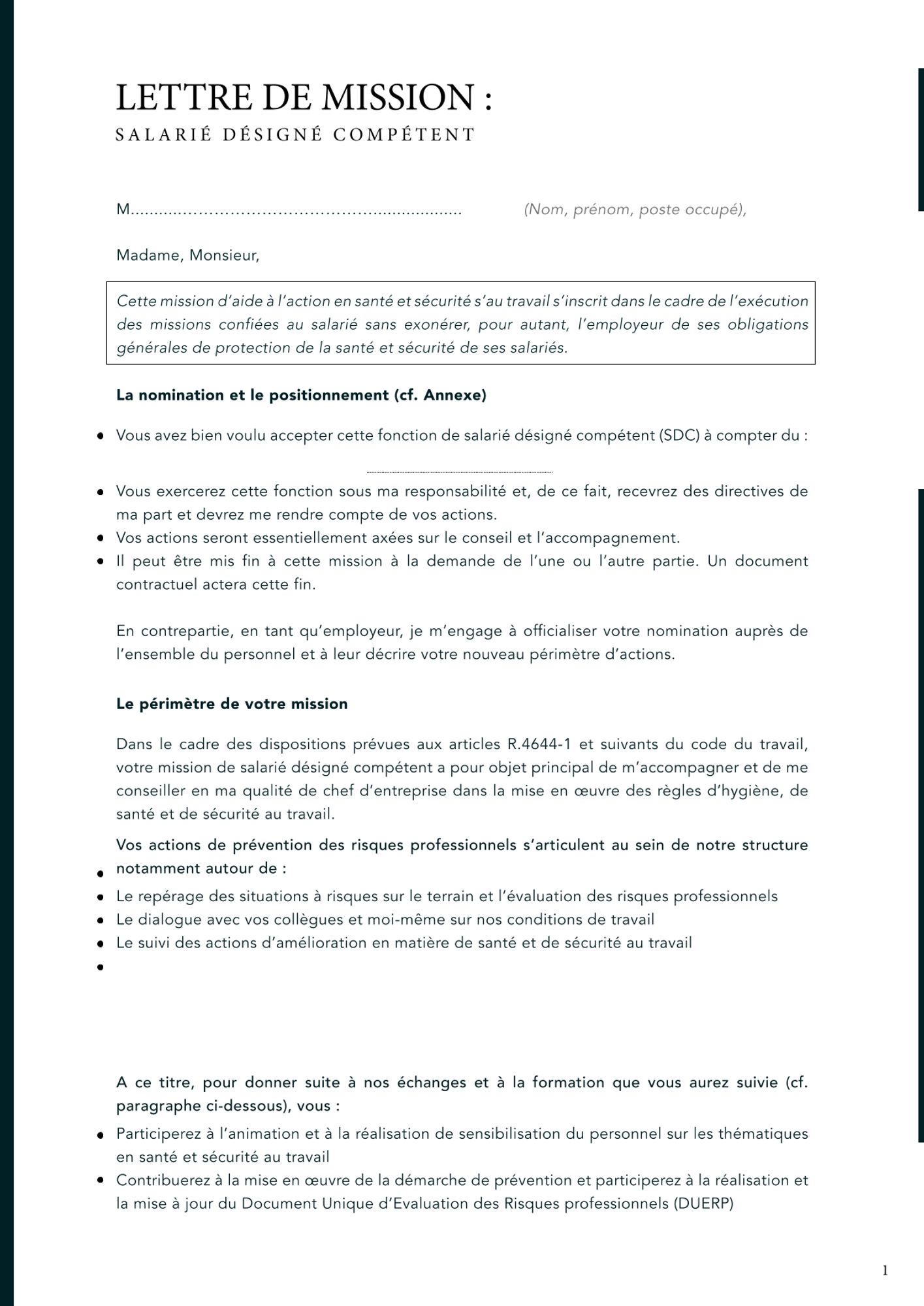 - Il est important de demander à votre employeur de travailler, ensemble, sur votre lettre de mission :